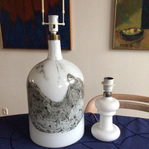 2 lamper med blåt mønster, 50 cm høje og en diameter på 25 cm - er uden skærme