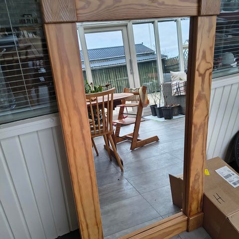 Smukt antikt træspejl
