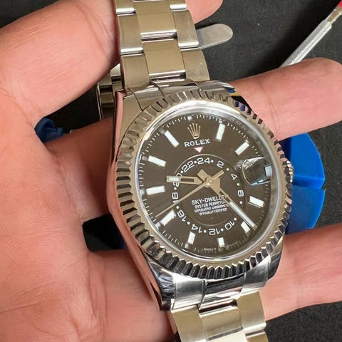 Franken udgøre 40 procent af uret , korrekt ift vægt og finish. Værket som org cal 1575.