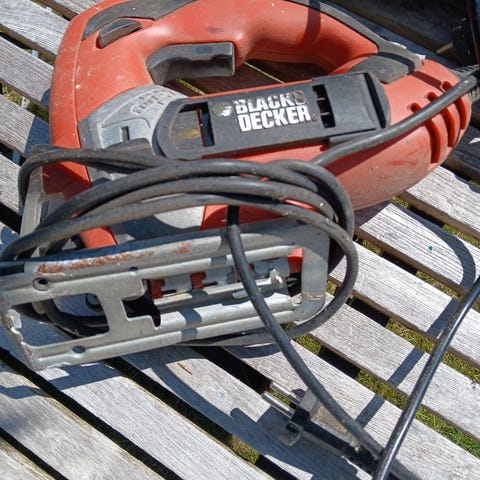 Rystepudser, Skruemaskine til gips mm. (pt med stjerneskruetrækker bits, kan udskiftes), og Stiksav, alle godt brugte men velfungerende.
