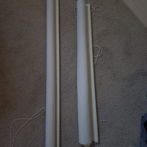 2 rullegardiner i gråt stof. Stoffet er let gennemsigtigt - se billederne. Mål: B = 120 cm, L = 185 cm. Minder om Skogskløver rullegardin fra IKEA - gardinet er fra IKEA - ved ikke hvad det hedder helt præcist - men udefra farve, udseende og montering er jeg ret sikker på det er det gardin.