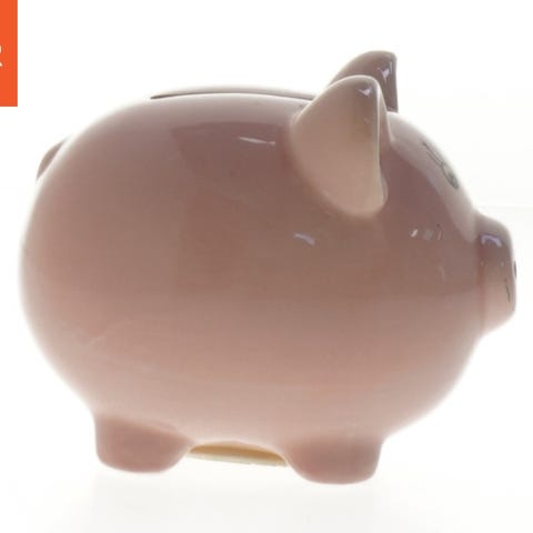 Sød og dekorativ sparegris i rødler.. Han fremstår i god stand med lidt patina.