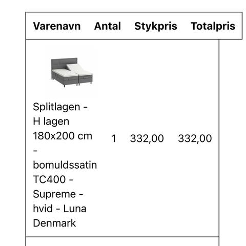 Lagen, Night & Day, H-split lagen / 2-split til elevationsseng. Percale. Hvid. Købt i Magasin. Vasket men aldrig brugt. Købt ved en fejl. Str 200x180