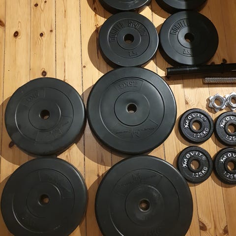 Tre vægtstænger inkl. låse. Overskud fra homegym. Vægt: ca. 1 kg. Pr. Stang med låse på. Bud modtages.