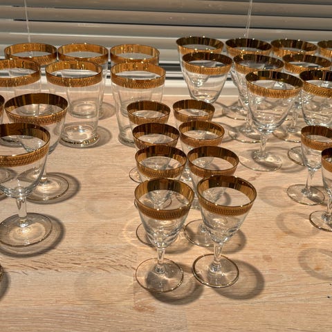 Glas, Likørglas, Måge med guld, 2 Måge likørglas med guld. I hel og fin stand
