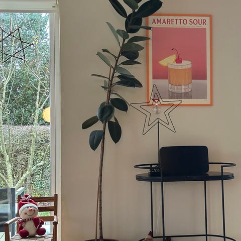 Vores flotte , smukke og meget frodige gummitræ er blevet for stort til vores stue . Den flotte krukke og underskål er med i prisen .