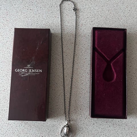 Georg Jensen Årssmykke 1994 i sølv med kæde som er 60 cm lang sælges for 800 kr.