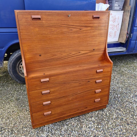 Flot sekretær fra H.W Klein. Mange fine detaljer og gennemført kvalitet. Udført i teak.