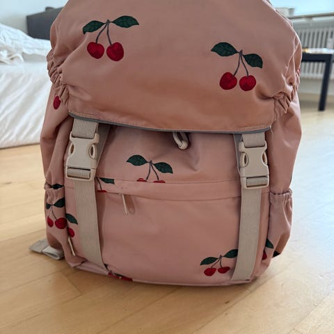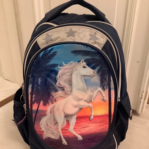 Min datter sælger sin skoletaske fra Lakserytteren.