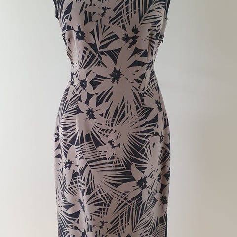 Kjole fra Jaeger, som er et engelsk high end brand, i sort størrelse 46. Kjolen er fremstillet af 63% viskose, 24% uld, 12% polyester og 1% elastan medens foret er fremstillet af 100% polyester, Brystmålet er cirka 108 cm og længden cirka 96 cm. Kjolen er med 3/4 ærme og med lynlås i siden cirka 36 cm.