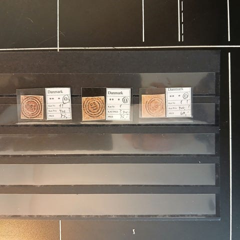 Danmark (352) 4 Rigsbankskilling. 3 forskellige. Aner ikke hvilke farver og dermed katalognumre. Førpris 185,- kr