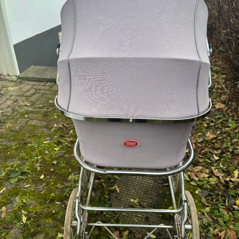 Meget velholdt odder retro barnevogn med store og små faste hjul .der er siddeklap i vognen samt madras og sele .der er lidt rust på stellet nederst se billeder ,men er yderst velfungerende .liggemål90cm afhentes i nørre nebel kan ikke sendes