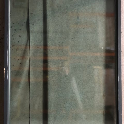 Fabrikat KPK i træ/alu sandblæsnings folie på noget af det øverste glas , det kan tages af.