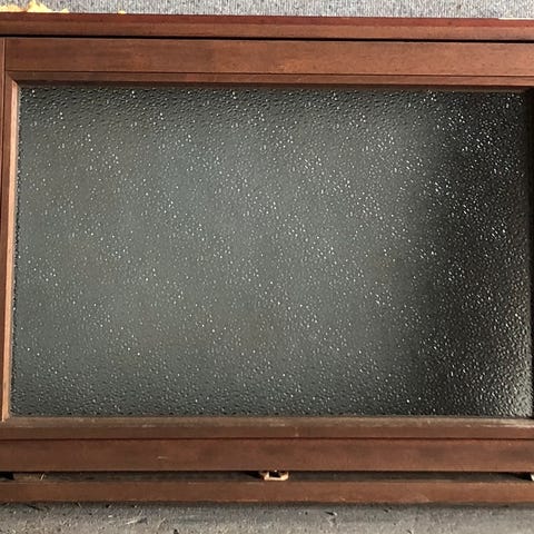 Vinduet er i mahogni med haspeluk/stormkrog og alu glas liste.