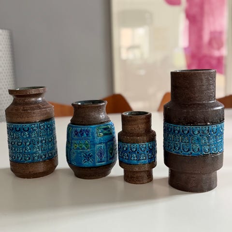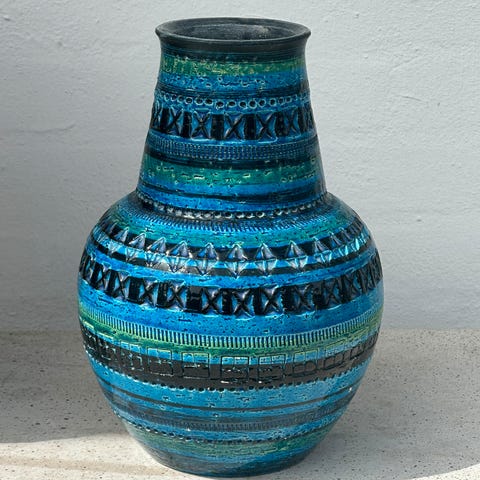 Keramik vase fra “Rimini Blu” serien, designet af Aldo Landi for italienske Bitossi. Vasen er 21 cm høj. Serien blev primært produceret i 1950’erne og 1960’erne. Den er i perfekt stand.