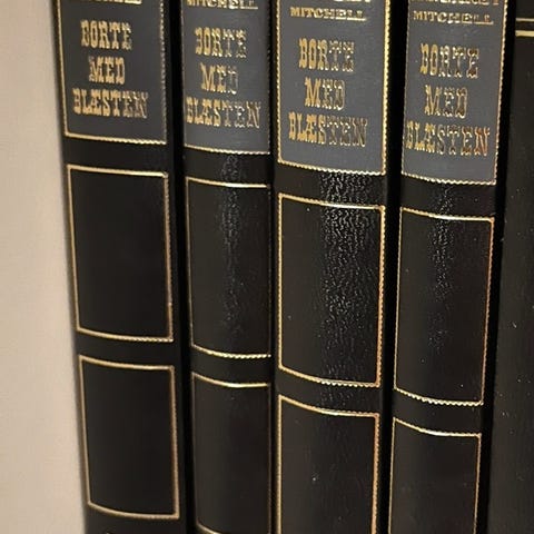 Slidt, gammelt eksemplar af Borte med blæsten af Margaret Mitchell til mange timers læsning i liggestolen 🌴🌞 - 1069 sider 😉
