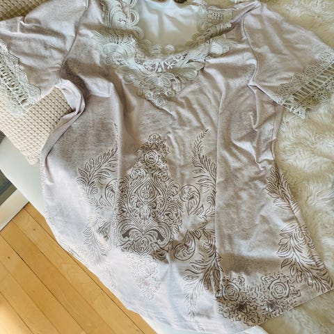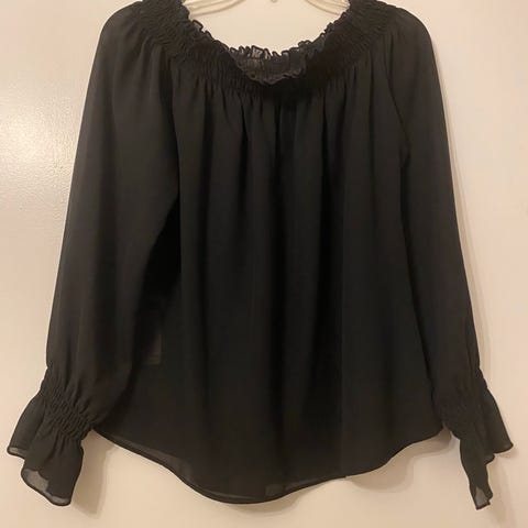 Flot bluse off-shoulder med elastik kant, så den kan trækkes ned over skuldrene og fine detaljer på ærmerne