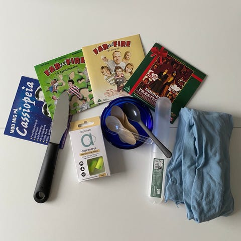 Forskellige ting per styk 30 kr. dem der er med blå stribet er solgt