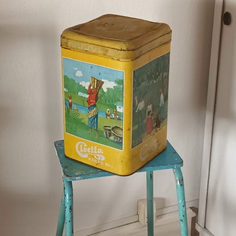 Gammel dåse fra Cloetta med brugsspor. Et rigtig samlerobjekt. Måler 9 x 10.