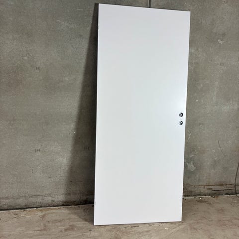 Swedoor Clever-Line celledør 82,5x194 cm med små fejl. Døren kan have små fejl. Afskalning i lakken på kanter, synlig samling ved kantlaminat. Laminatet kan have fået lidt fugt, derfor synlig samling. Indvendig dør. Hvid glat på begge sider. Malet i farve NCS 0500-N. Modulmål: 9x20. Nøgle medfølger løst. Dimension: 825x1940x40 mm. Uden karm, gerigter og dørgreb. Prisen er pr. stk.