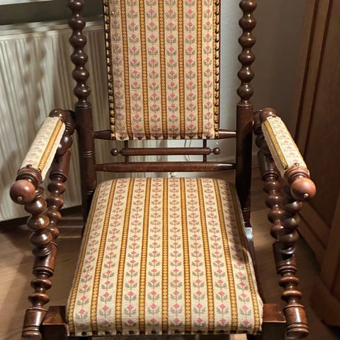 Gyngestol fra slut 1800. Den er svensk med den originale udsmykning.