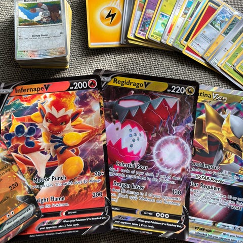 50 alm kort, 10 glimmer og et sikkert Gx, ex eller V kort i pakken
