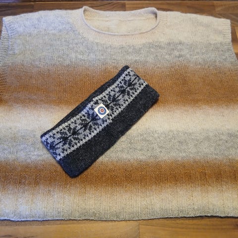 Hjemmestrikket, superblød vest i ren uld - HELT kradsefri! Brystvidde 86 cm - hel længde 53 cm. Kan sendes på købers regning