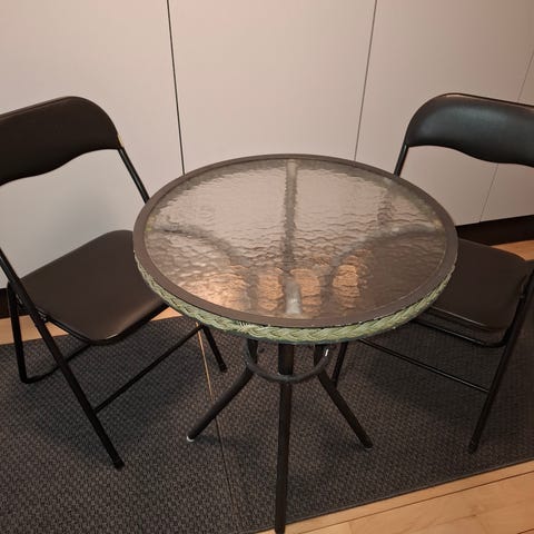 Altansæt diverse: 2 hvide stole i metal foldbare pr stk kr150 hvidt foldebord i kraftig plast diameter 65cm højde 73cm kr275 altanbord foldbart i gråmetal med kraftig bordplade i matteret glas diameter 60cm højde 70cm kr250 alttanbord i sortlakeret metal med kraftig glasplade diameter 60cm højde 70cm kr125 absolut faste priser kan ikke forhandles