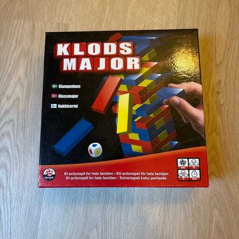 Et spændende og sjovt spil for hele familien, hvor man skal have nerver af stål og være fiks på fingerne i forsøget på at bygge tårnet højere og højere. Vælter man tårnet er man udråbt til "KLODSMAJOR"