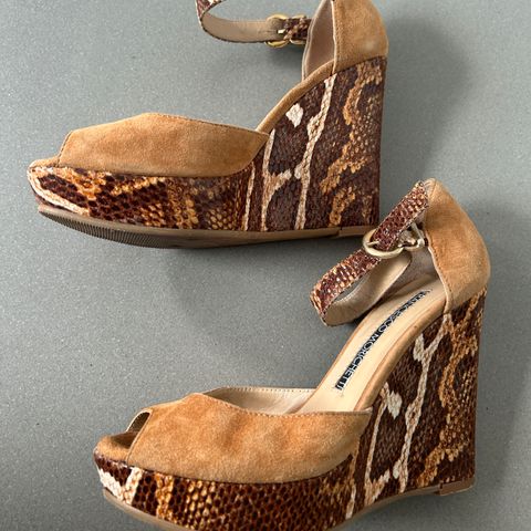 CCDK, Natur/ guld, læder og kork, God men brugt, Velholdt. Hæl: 8 cm.