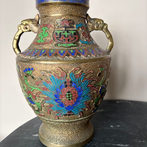 Cloisonné-vase, 22 cm høj( uden Plato)