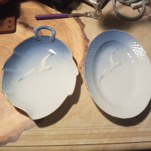 Stort stegefad 40x28, lille urtepotte, jordbærkande, sennepskrukke, vase, 3 middagstallerkener, opsats og en skål. Sælges samlet. Skal hentes på Vesterbro.