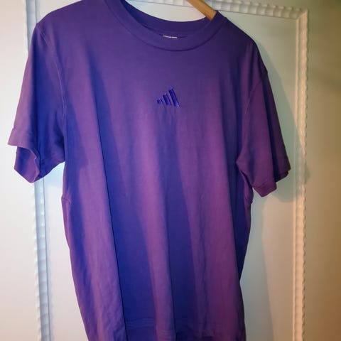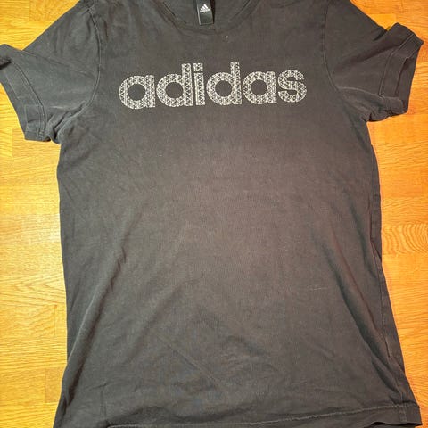 T-shirt'en har lidt slitage ved røde adidas mærke på ærmet. Trøjen tåler ikke at blive vasket på mere end 30 grader finvask, hvis du ønsker logo bliver på trøjen.