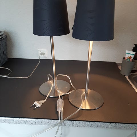 Bordlampe i glas med smuk marineblå skærm. Mål 40 cm inklusiv skærm. Ny og uåbnet. Har to stk. prisen er for 1 stk.
