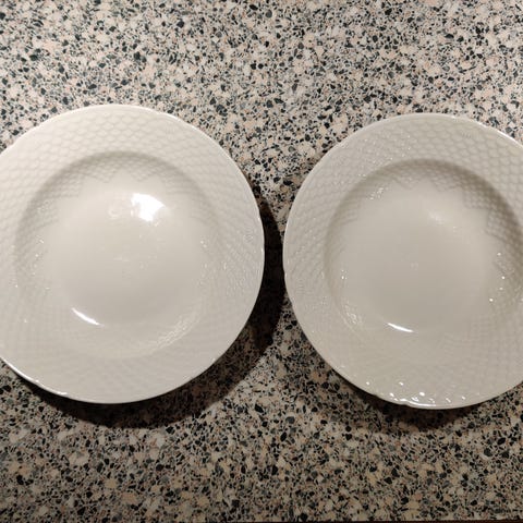 Dyb tallerken , “ Heimdal “ fra Bing og Grøndahl , nr 23 , 21 cm dia , kun brugt få gange . Pris pr stk 90 kr .
