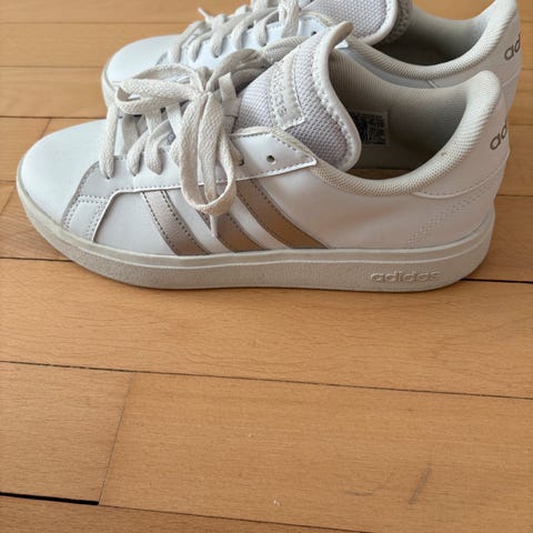 Ubrugte Addidas sko med guld print.