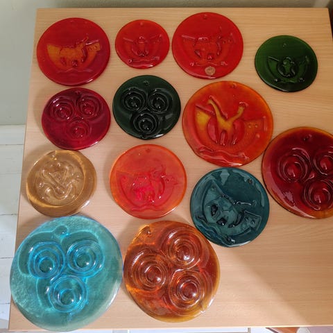 Fine solfangere fra Holmgaard 1970'erne. Måler ca 8-9 cm I diameter.