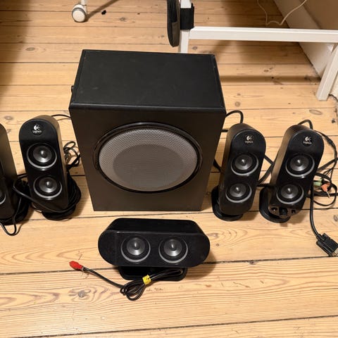 Højttaler, Logitech, X-530, 70 W, God, Logitech 5.1 højtalersystem (surround sound). Fin stand med brugsspor. Afhentningspris 400 kr.
