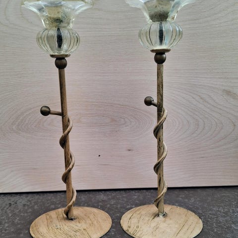 Vintage lysestager i opaline glas, fra 1960'erne. 17 cm høje til normale stearinlys