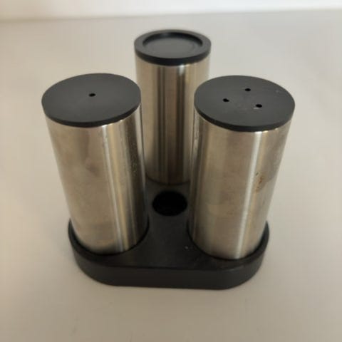 Salt og peber sæt i plast fra ikke ryger hjem sælges, da de er blevet i overskud.