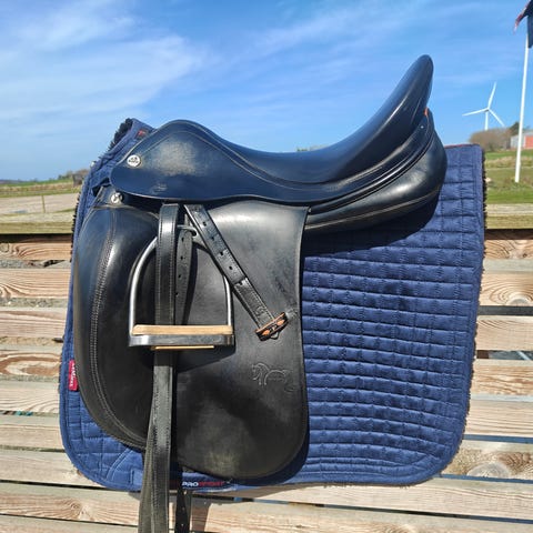 Bates Arena dressursadel 17”. Fantastisk dejlig og meget velholdt dressursadel. Kun minimale brugsspor. Sælges kun da vi desværre ikke har hesten mere.