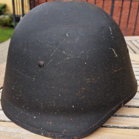 Komplet svensk militærhjelm M/37 hjelm med hagerem. Der er synlige buler og ridser. Se billerne