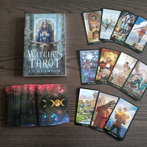 Som nyt - kun brugt få gange. Dog har et enkelt kort en lille skade for oven og prisen er sat lavere på grund af denne. Sættet er komplet med 78 kort. Fra røgfrit hjem.