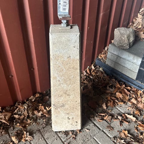 Det bruges til at forankre en struktur, sandsynligvis en form for opbevaringsskur eller lignende, for at give stabilitet og beskyttelse mod vind.