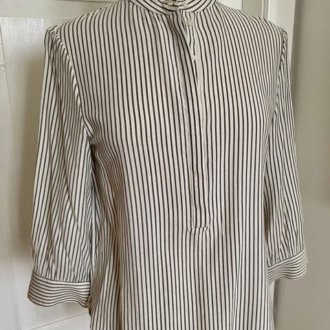 Skjorte med elastik på ryglinning og bindesnipper foran. Ret fin men jeg har ikke brugt den.