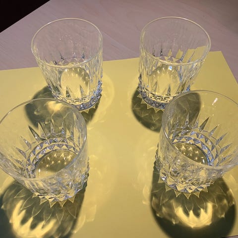 Størrelsen er et lille hvidvinsglas, et stort portvinsglas, eller måske til likørvin.