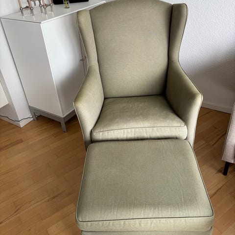Rigtig fin lænestol med tilhørende skammel.