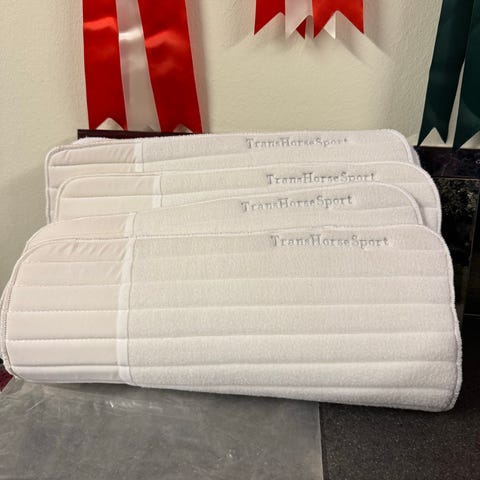 Helt ubrugte bandager og bandageunderlag fra Trans Horse Sport. Nypris er 430kr. Grå. Rigtig flotte og i original pose.