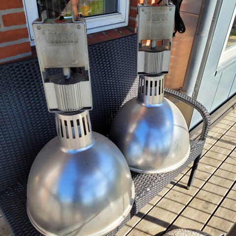 Sælger 8 stk. industri-pendellamper fra kvalitetsmærket Thorn, model Glacier 5515.
