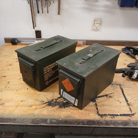 4stk ammunitionskasser sælges. Lidt rust indvendigt, repareret med Hammerlak.